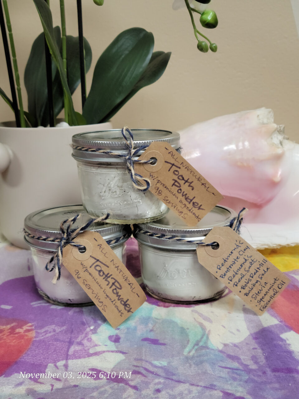 Revitalize your oral hygiene naturally with our 100% Organic Fluoride-Free Mint Tooth Powder, a refreshing, mineral-rich formula crafted to clean teeth, strengthen enamel, and freshen breath—no fluoride, no artificial sweeteners, no synthetic foaming agents, just pure plant-powered care.